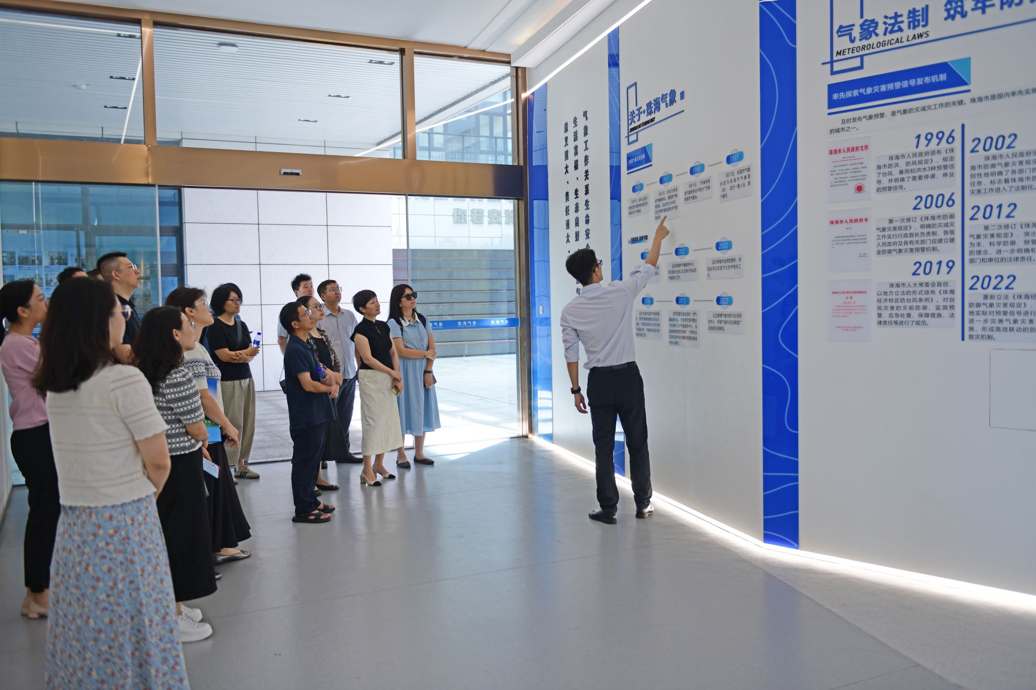 会后,与会人员联合空天信息学域、海洋科技学域科研团队人员赴珠海市气象局开展学习交流。参观了气象科普长廊、气象新媒体中心、预警信息发布大厅及天气预报大厅等核心区域。珠海市气象局(台)党组书记、局长(台长)赵永利与到访人员交流座谈,并详细介绍该局基本架构及珠海气象业务发展情况,强调希望与校方深化科研合作,通过优势互补、资源共享推动地方经济社会发展。