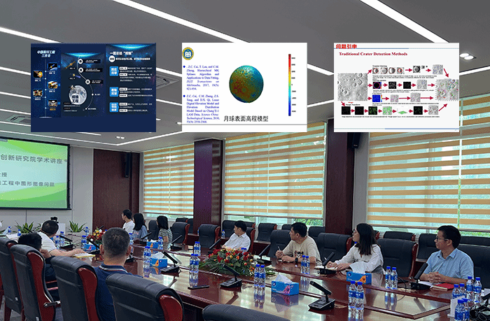 蔡占川系统地展示了图形图像处理的尖端技术及其在月球探测中的应用,在随后的讨论交流环节,师生们就图形图像技术、知识产权申请、科研论文撰写和月球表面特征等踊跃提问,蔡占川一一详细解答。
