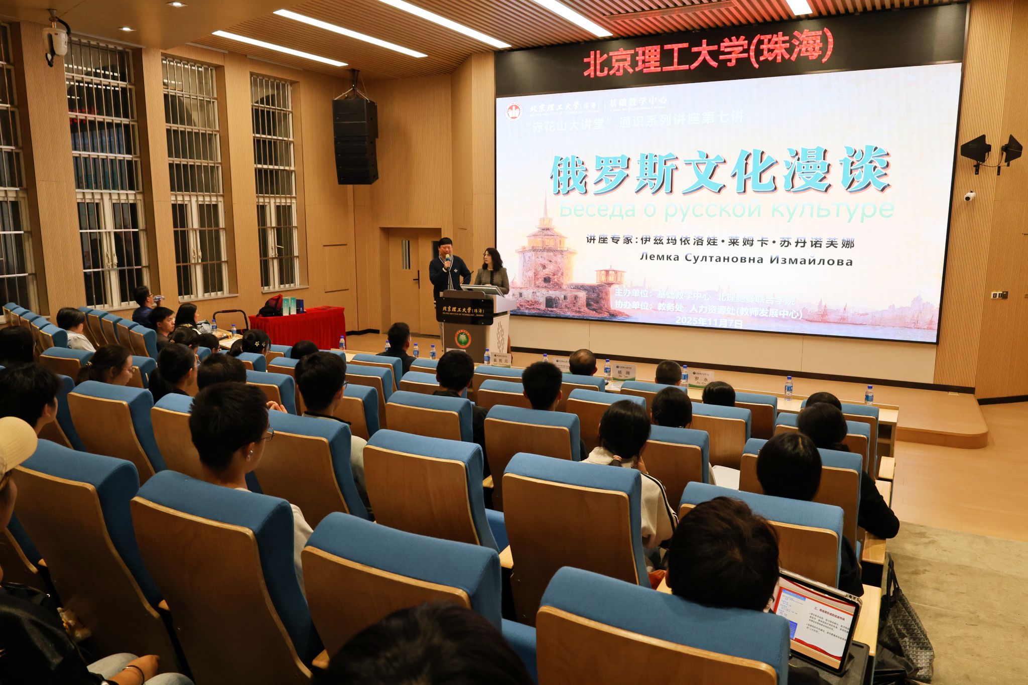11月7日晚,一场别开生面的文化盛宴在弘毅楼HE106报告厅上演。深圳北理莫斯科大学学术事务部部长伊兹玛依洛娃·莱姆卡·苏丹诺芙娜教授应邀作“俄罗斯文化漫谈”专题讲座,为在场师生开启了一场跨越亚欧大陆的文化之旅。