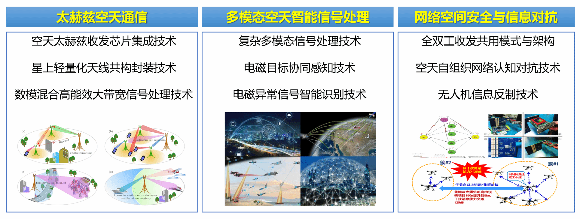 实验室重点发展太赫兹空天通信、多模态空天智能信号处理、网络空间安全与信息对抗等研究方向。