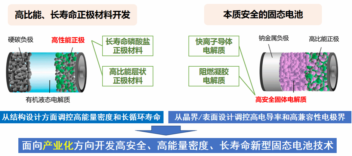重点开展高能量密度固态锂离子电池、钠离子电池及相关高密度储能新材料的创新研发。