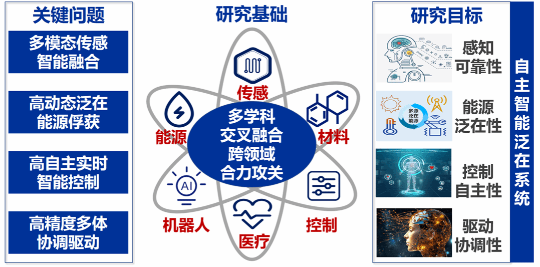 自主智能系统实验室专注于多个研究方向,包括泛在能源、智能感知、智能控制、智能驱动等领域。团队在自主智能系统的共性问题及优化、控制与决策、能源俘获与控制等领域内进行深入研究,具体地以智能运动体、无人系统等自主智能系统的共性问题科学研究为基础,研究自主智能系统建模机理、演化机制、涌现特性、自主决策、智能协同控制等共性问题及优化控制与决策。实验室将积极申报国家重点研发计划、基金委重点项目、国家科技重大专项课题等国家重点项目,开展自主智能系统的基础与应用研究,产出世界一流水平的研究成果,并建立示范应用。