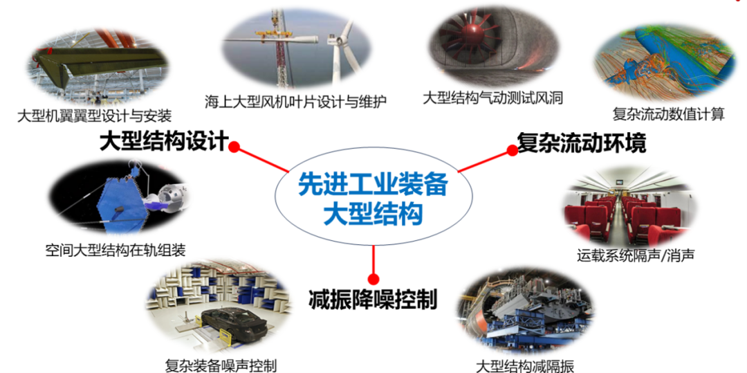 面向航空航天、海洋工程、工业装备等领域大型结构动特性设计与预测、结构波动与振动控制、复杂流动感知与流固耦合分析等需求: