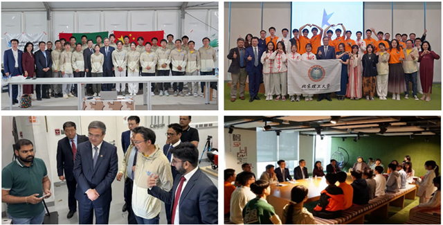 访问期间,张军慰问了由北理工与哈里发大学师生共同组成、正在紧张备战2024年穆罕默德·本·扎耶德国际机器人挑战赛决赛(2024MBZIRC)的飞鹰队,和我校徐特立学院/未来精工技术学院赴阿开展冬令营任务的师生。在备赛基地,张军与飞鹰队师生亲切交流,勉励全体队员要发扬北理工实事求是、追求卓越的科学精神和不辱使命、为国铸剑的担当精神,不断创造新佳绩。在随后举行的决赛中,北理工“飞鹰队”不负众望,再次取得优异成绩,是决赛中唯一完成多项任务的参赛队伍。在哈里发大学,张军详细了解了学生在阿期间的课程学习、实验室参访、企业观摩和研学感悟,为远在他乡的北理学子送上新春祝福,寄语同学们要秉承“胸怀壮志、明德精工、创新包容、时代担当”的理念,与历史同步伐、与时代共命运,强化基础、历练能力,早日成长为支撑中华民族伟大复兴的栋梁之才。