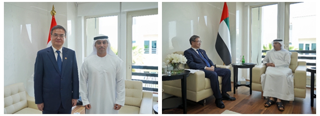在阿联酋教育部,张军与法拉希就人才培养、学术交流、海外办学、职业教育等议题深入讨论。法拉希高度赞赏北理工与阿联酋一流高校、知名企业和科研院所在各自优势领域积极开展科技创新与人才培养,并表示阿联酋将充分发挥“一带一路”连接东西方重要枢纽的区域优势,为加快推动北理工与阿方在高等教育领域合作新发展、培育人才联合培养新亮点、拓展国际科技创新合作新领域提供支持和帮助。