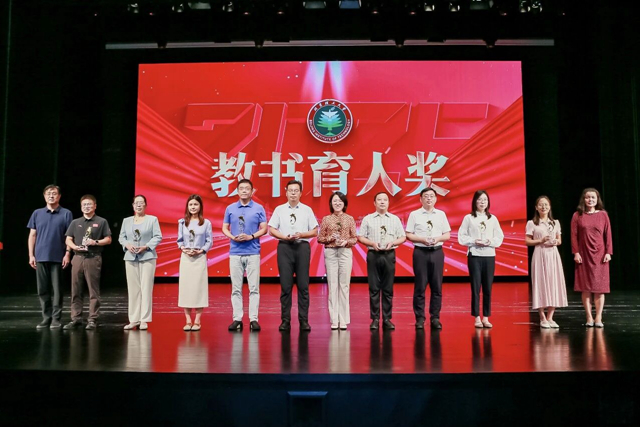 校长助理、党委常委、党委组织部部长阎艳,党委常委、党委宣传部部长蔺伟为获得教书育人类奖项的教师代表颁奖