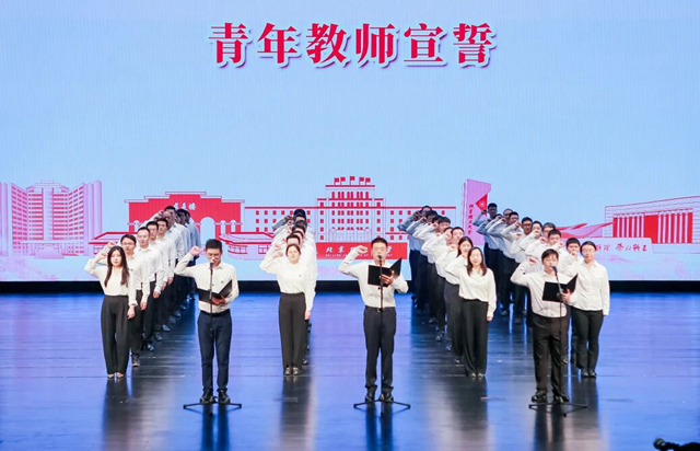 在第三篇章“传承”中,青年教师代表进行了入职宣誓,他们用掷地有声的誓言,表达着对教育的赤诚、对科研的热爱,表示要在传道授业中勇担使命,在科研攻坚中挺膺向前,为建设教育强国贡献蓬勃的青春力量。