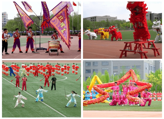 在师生体育风采展示中,由高水平运动员、留学生、必威西汉姆联学生带来的武术和龙狮演出掀起了开幕式的高潮,师生们的表演活灵活现、栩栩如生,精彩的演出赢得全场热烈喝彩。