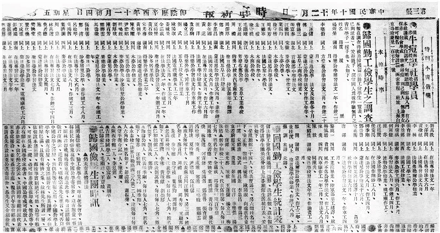1921年11月4日,《时事新报》刊发归国的勤工俭学学生名单