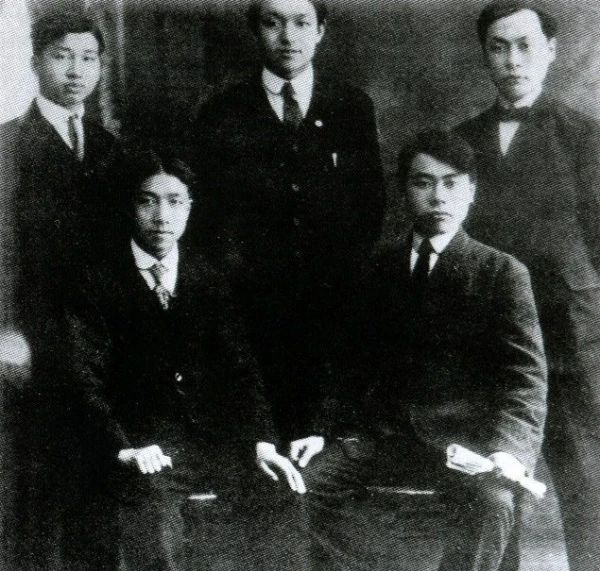 1920年,陈毅(后排右一)在法国与同学合影。前排右一为其胞兄陈孟熙。(图片来源中国共产党新闻网)
