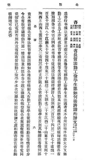 1921年,巴黎华法教育会因经费困难,无力救助勤工俭学学生,致电国内各省教育机关对学生进行救助