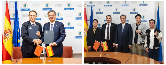 在马德里理工大学,张军与该校校长加西亚(Óscar García Suárez)续签校际合作备忘录。双方确定基于20年合作基础,围绕航空航天、新能源汽车、新材料等领域加强教育科研合作,联合培养卓越工程人才。张军会见了在马德里理工大学交流访学的学生和校友代表,勉励同学们珍惜交流学习机会,深耕专业,积极担当中西科技交流合作桥梁纽带。