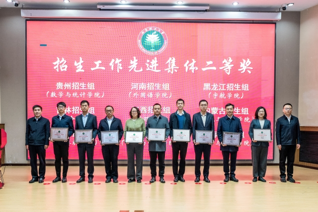 党委常委、副校长王博,党委常委、副校长李振键为2024年招生工作先进集体二等奖获奖代表颁奖