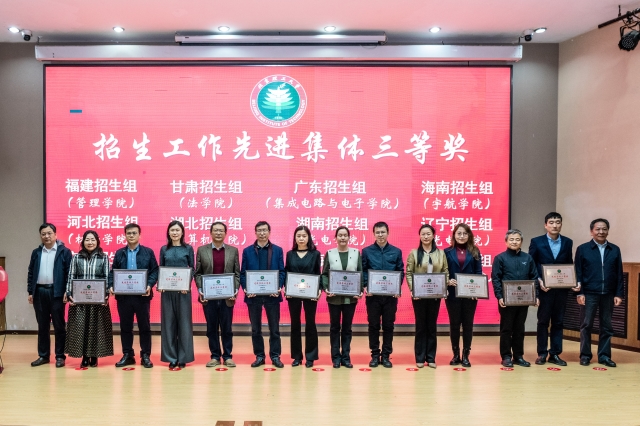 党委常委、副校长王博宣读了2024年招生工作表彰决定。张军、姜澜及相关校领导对2024年荣获卓越领航人奖及招生工作先进集体奖的个人和集体进行颁奖。