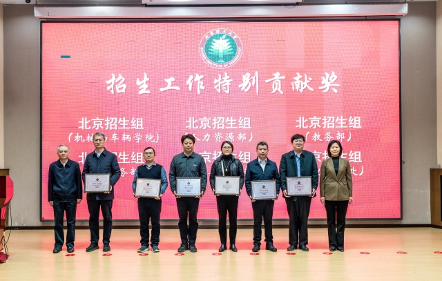 党委常委、副校长汪本聪,党委副书记、副校长庞思平为2024年招生工作先进集体三等奖获奖代表颁奖
