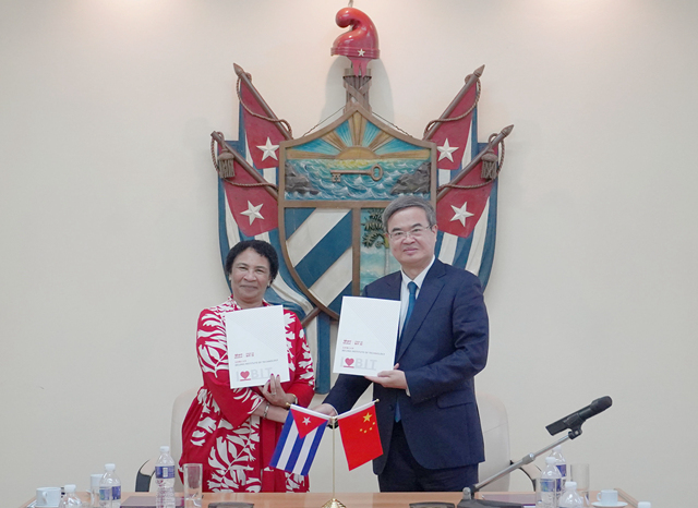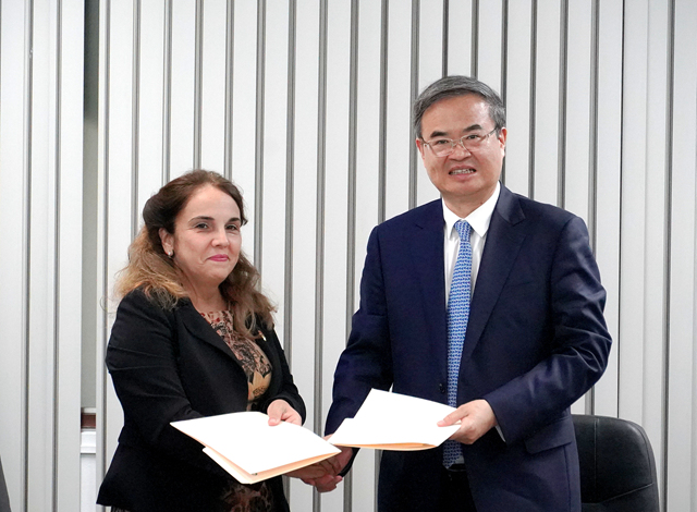 在古巴期间,时值我校与古巴免疫检测分析中心科技合作项目启动,张军在古巴免疫检测分析中心与古巴生物医药集团主席毛利(Mayda Mauri Perez)以及古巴免疫检测分析中心局长卡洛斯(Niurka Carlos Pias)会谈,共同商讨在生命科学、医学工程领域扩大合作事宜。双方共同见证了我校与古巴免疫检测分析中心共建联合实验室协议签署仪式。我校集成电路与电子学院张帅龙与古巴免疫检测分析中心成功立项政府间科技合作项目“基于数字微流控的呼吸道传染病自动化检测设备开发与应用研究”,是2023年我国与古巴医学技术领域唯一获批的国家级重点研发计划。