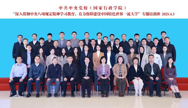 为深入学习贯彻习近平新时代中国特色社会主义思想,教育引导党员领导干部锲而不舍贯彻中央八项规定精神,锻造忠诚干净担当的高素质专业化干部队伍,3月31日至4月3日,学校党委组织部/党校联合纪检监察机构选调部分新提任干部、年轻干部和关键岗位干部,在中央党校(国家行政学院)举办“深入贯彻中央八项规定精神学习教育,有力保障建设中国特色世界一流大学”专题培训班。