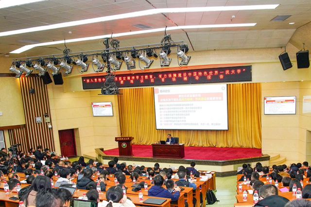 校党委书记、党校校长张军以《深入学习领会习近平总书记关于党的自我革命的重要思想,做忠诚干净担当好干部》为题作开班讲话和首场辅导报告。张军首先领学了习近平总书记关于党的自我革命的重要思想,从历史、现实、政党建设三个逻辑系统阐述了党开展自我革命的必要性。立足时代发展形势,聚焦教育、科技、人才“三位一体”发展要求,结合高校全面从严管党治校目标任务,从铸就政治忠诚、筑牢信仰根基,坚定理想信念、坚守初心使命,提升能力本领、锤炼过硬内功,强化担当作为、勇挑发展重任,严守纪律规矩、涵养清廉底色五个方面,对开展好深入贯彻中央八项规定精神学习教育,造就忠诚干净担当的高素质干部队伍提出要求。