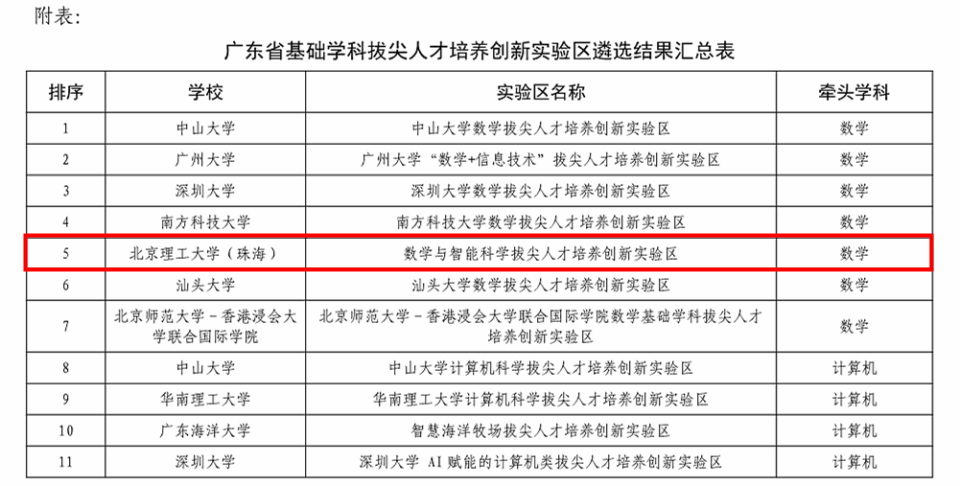 广东省基础学科拔尖人才培养创新实验区建设是广东省深入实施基础学科拔尖人才培养战略行动,深化新工科建设,构建高质量拔尖创新人才自主培养体系的一项人才培养计划。该计划以培养未来世界领跑者、学术名家和科技领军人才为目标,高度契合未来科技发展和产业提质升级需求,厚植学科基础、注重交叉融通,加强同高中学段衔接,及早发现和培育基础学科人才“苗子”,打造拔尖人才培养“特区”。