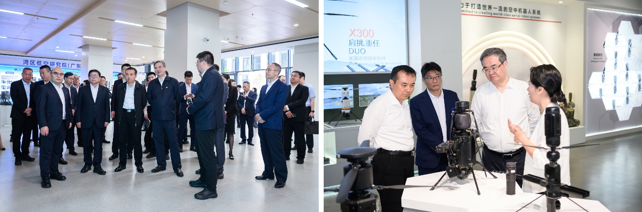 活动中,与会嘉宾参观了湾区低空研究院感知与反制技术创新中心,深入了解研究院的科技创新成果与发展规划,并一同调研了珠海览众创新科技有限公司。