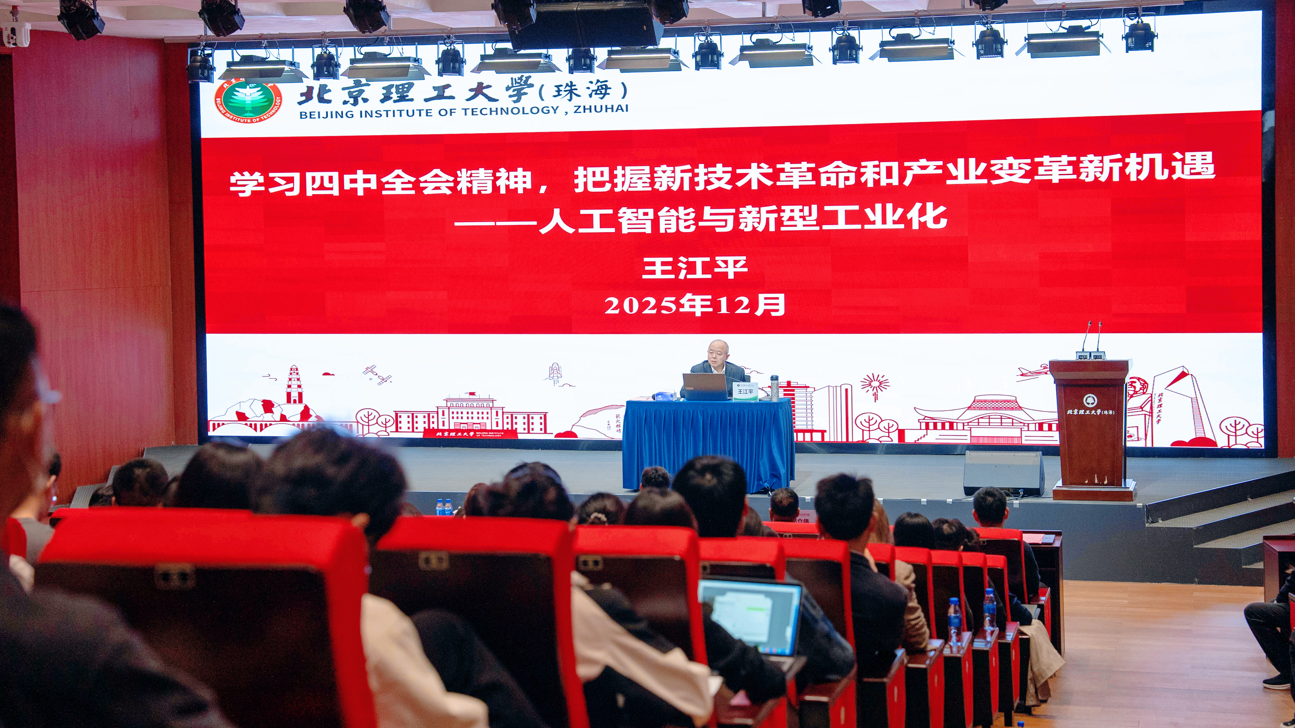 王江平以“学习党的二十届四中全会精神,把握新技术革命和产业变革新机遇——人工智能与新型工业化”为主题,系统梳理全球人工智能发展的宏观态势,重点剖析当前领域最受关注的五大焦点议题与治理挑战,并在此基础上提出我国在“十五五”期间人工智能发展的战略方向与实施路径。讲座中,王江平结合我国推进新型工业化的宏伟蓝图与实践成效,通过多个前沿案例,生动阐释人工智能赋能新型工业化的核心逻辑与实践前景,为高校对接国家战略、助力构建智能化、绿色化、融合化的现代化产业体系提供重要思路。