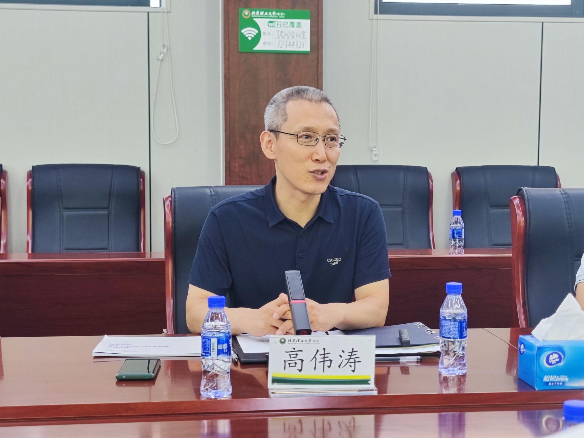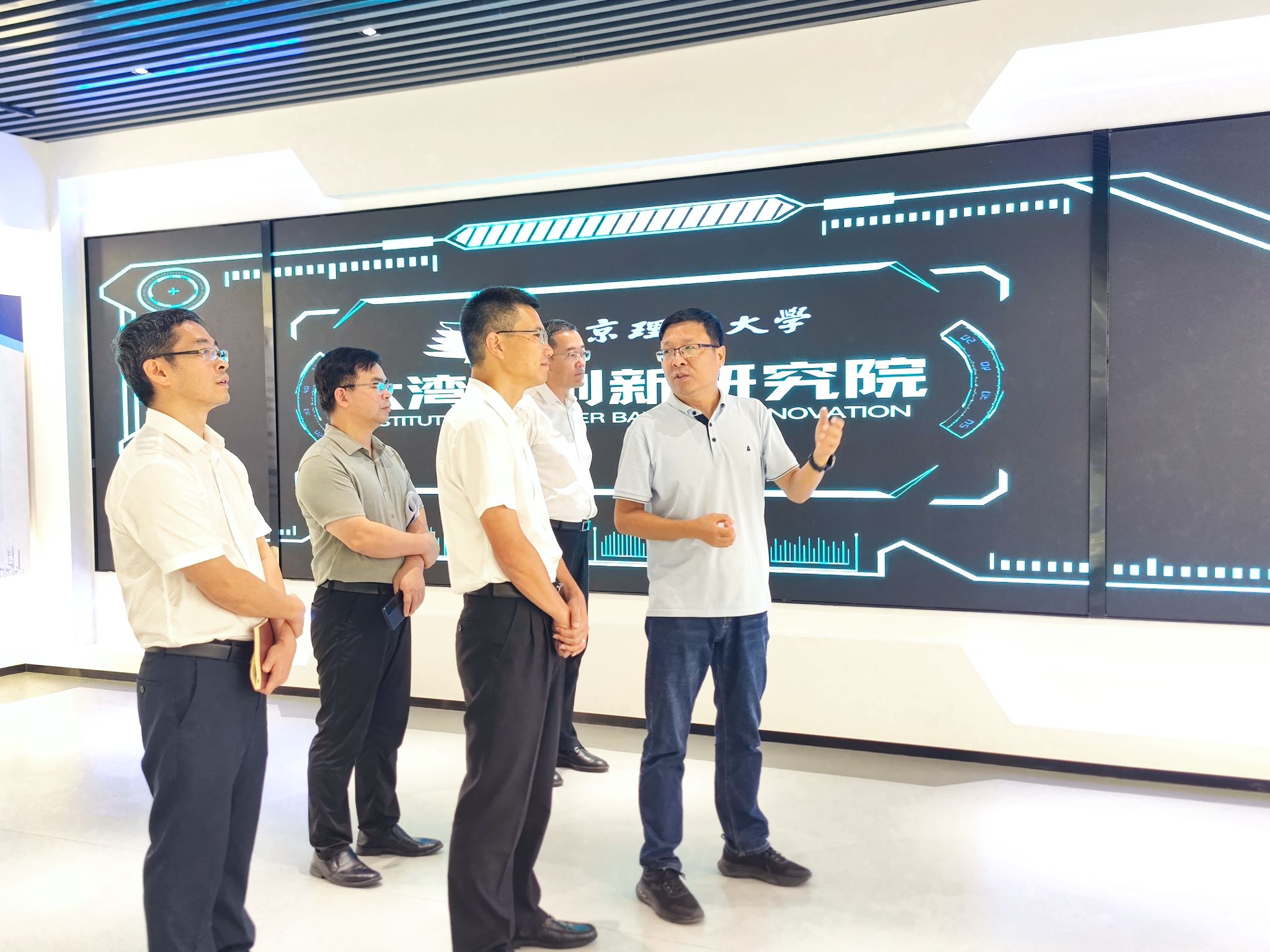 座谈前,在大湾区创新研究院,邵立伟详细介绍了校区在队伍建设、科技创新、成果转化等方面的建设进展。