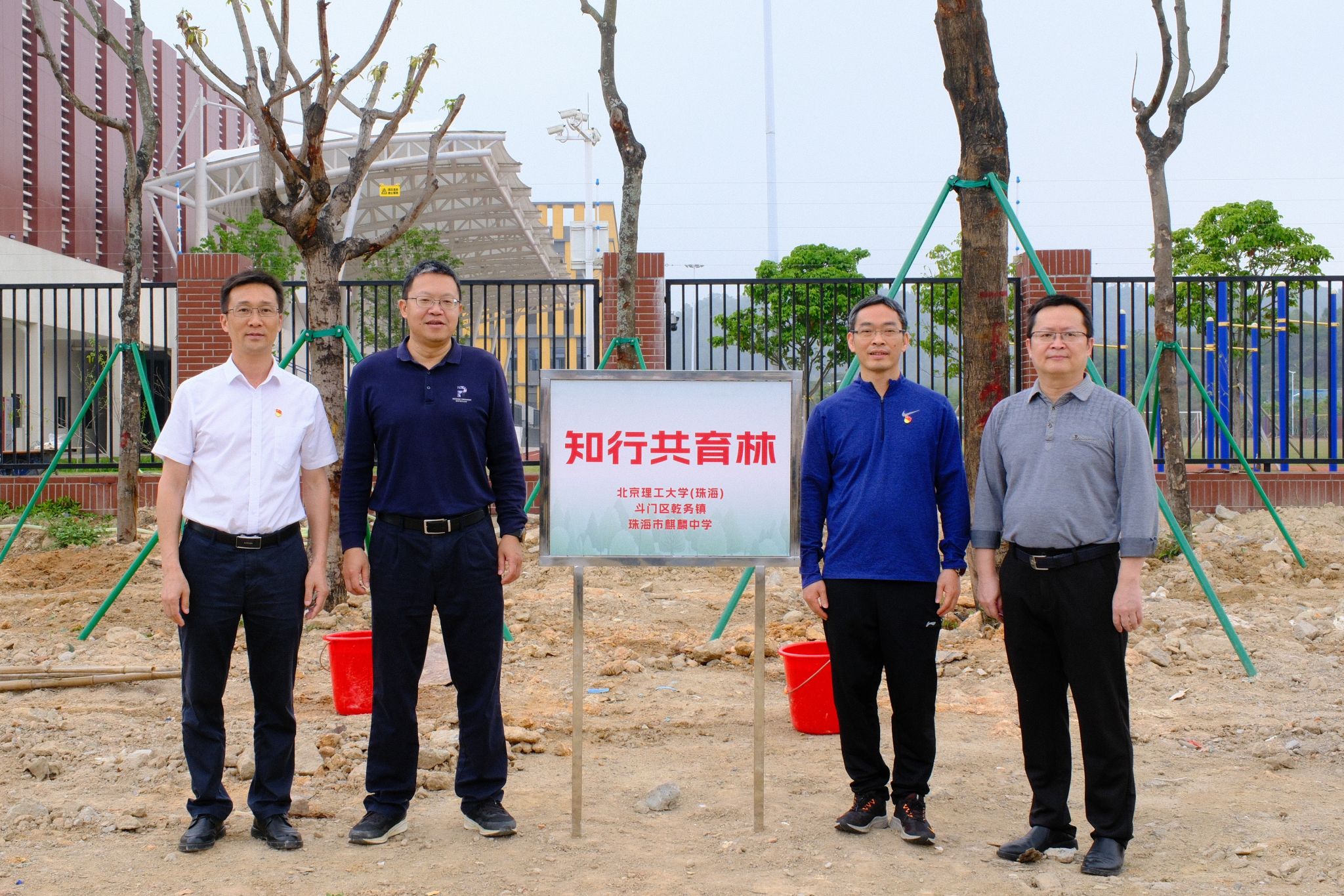 必威西汉姆联党委专职副书记卓颖强、乾务镇镇长赵伟豪、珠海市委政法委派驻乾务镇百千万专员钟宁益、珠海市麒麟中学校长刘中正共同为种植的“知行共育林”揭牌。三方共育“知行共育林”,以绿色生态为纽带,凝聚多方力量,为区域可持续发展注入活力,助力“百千万工程”在教育领域和生态建设中走深走实,推动大学与中学协同育人、共筑绿色未来。