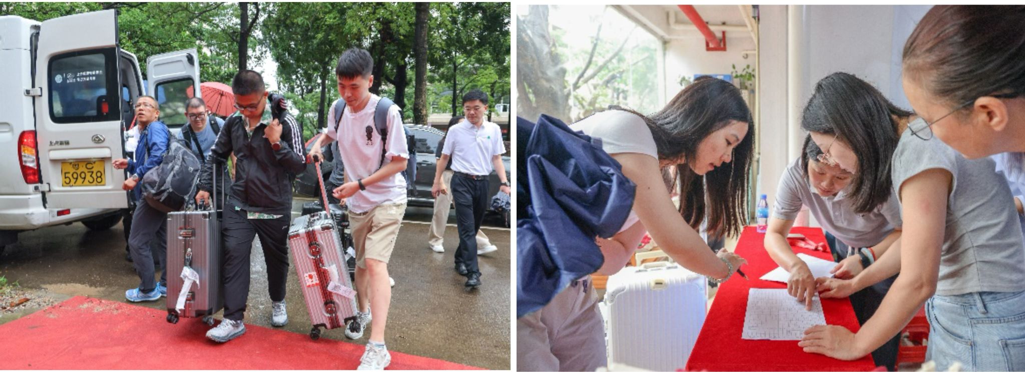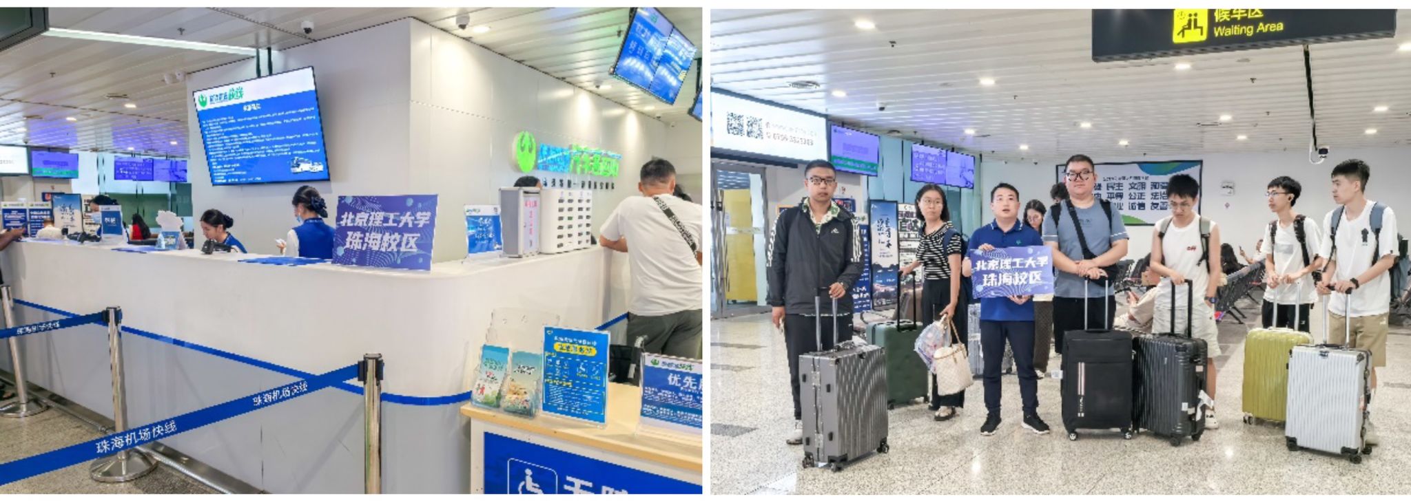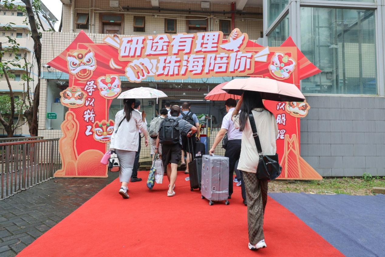 报到当日,珠海机场、轻轨珠海站和珠海北站均设置了醒目的 接待点,专车等候,将远道而来的学子们安全、便捷送达校区。 在报到现场,工作人员热情细致地引导每一位新生完成签到、报到 注册及学籍确认等流程,确保整个入学过程顺畅无阻。