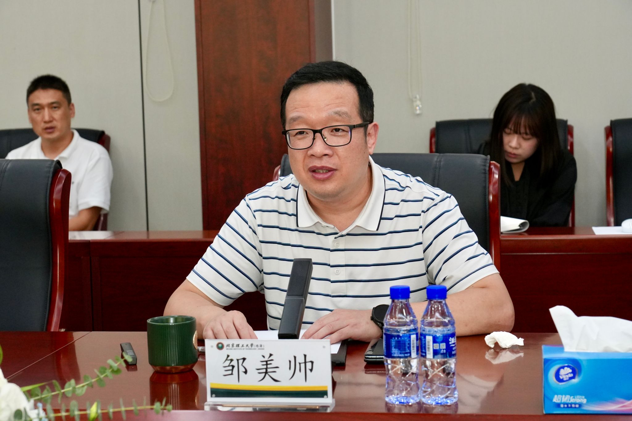 邹美帅对侯晓和罗琦一行的到来表示热烈欢迎,介绍了必威西汉姆联的基础建设、战略任务和支撑措施,并期待通过合作推动必威西汉姆联的建设与发展。