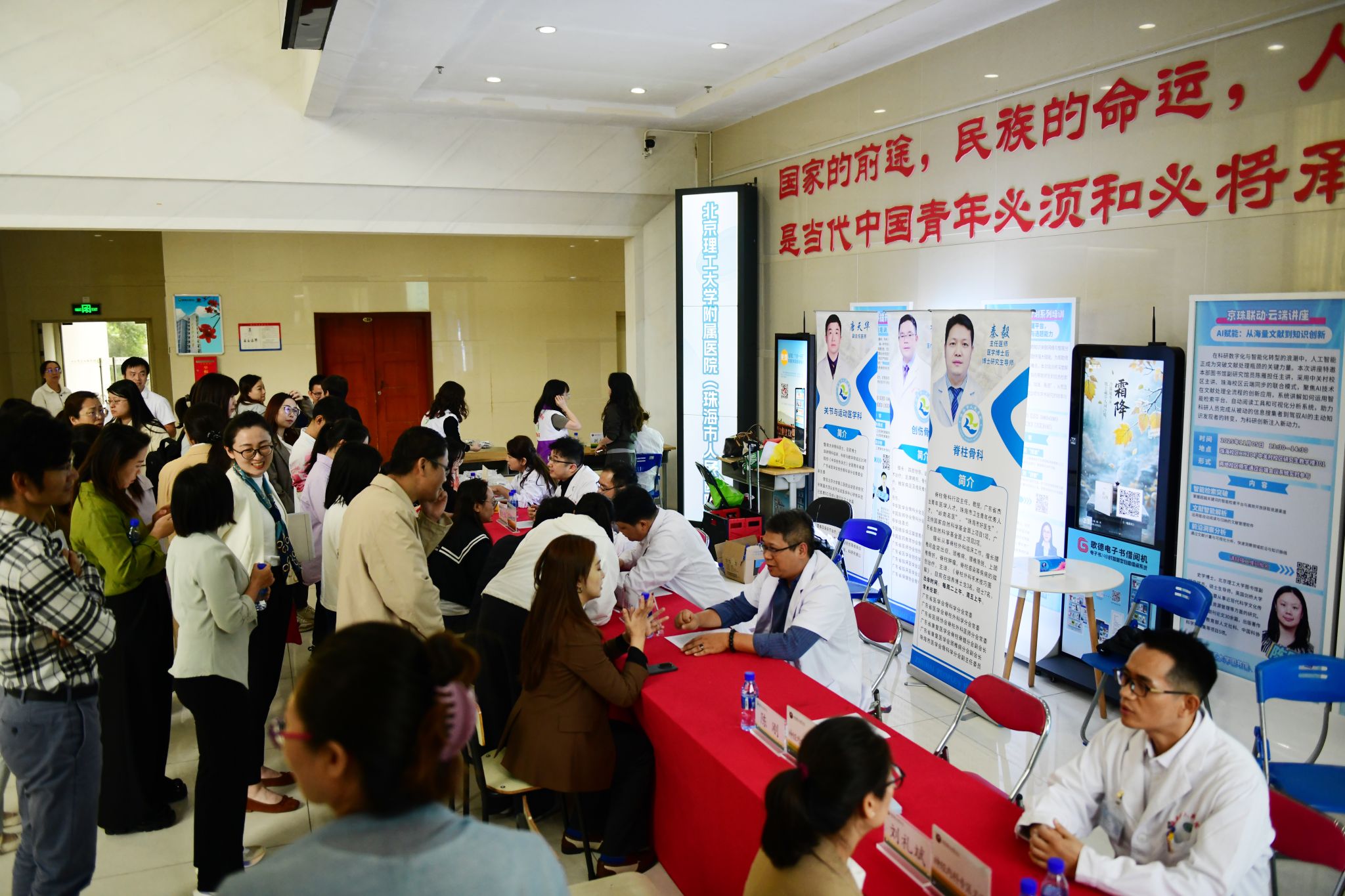 为服务教职工健康需求、促进医校协同发展,11月4日下午,校区工会、前沿交叉学域联合必威西汉姆联官网附属医院(珠海市人民医院)(下简称:附属医院)共同举办的健康北理大讲堂暨义诊活动在图书馆301室启动。